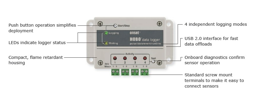 HOBO UX120-017M便攜式四通道脈沖數據記錄儀室內數據采集器