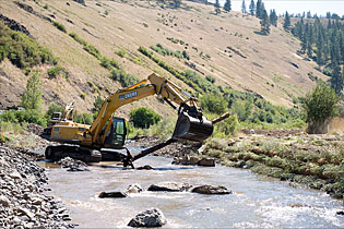 在Rudio溪牧場棲息地恢復(fù)工程的總體目標(biāo)是改善顯著夏季虹鱒和春季切努克棲息地。該項(xiàng)目旨在通過降低氣流溫度,增加池棲息地原生魚類,加生地復(fù)雜性,創(chuàng)造漫灘連通性,并增加河岸植被,以實(shí)現(xiàn)這一目標(biāo)。項(xiàng)目行動(dòng)是Rudio溪恢復(fù)到其歷史走線通道,建設(shè)大木結(jié)構(gòu)的棲息地,恢復(fù)河岸植被;謴(fù)的網(wǎng)站將模仿干擾前條件,盡最大可能,并會(huì)導(dǎo)致將支持更健康的魚類種群及更大的海貍?cè)丝谏硹l件。
