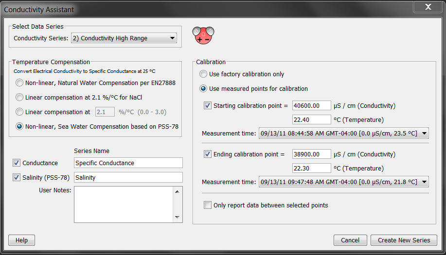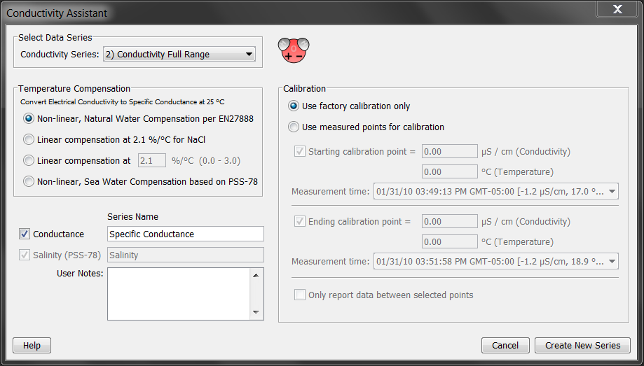 電導(dǎo)率助手將原始電導(dǎo)率數(shù)據(jù)從U24記錄儀轉(zhuǎn)換為特定電導(dǎo)率和/或鹽度。 您還可以使用它來輸入在部署開始和結(jié)束時記錄的現(xiàn)場校準(zhǔn)測量,以進(jìn)行校準(zhǔn),并補(bǔ)償漂移和傳感器污染影響。