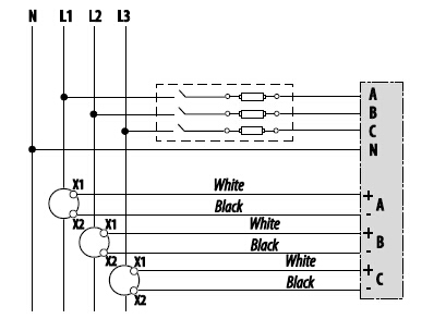 圖5:3相4線星形直接電壓輸入連接3 CT 系統(tǒng)類型3L+1N