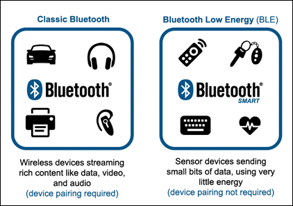 BLE和傳統(tǒng)藍牙之間的主要差異有做的數(shù)據(jù)的方式被傳送。經(jīng)典藍牙,提供實質(zhì)上更大的吞吐量,能夠為需要交換的數(shù)據(jù)量較高,是理想的連續(xù)數(shù)據(jù)流應(yīng)用,如電話耳機,游戲控制器,無線鍵盤和打印機。