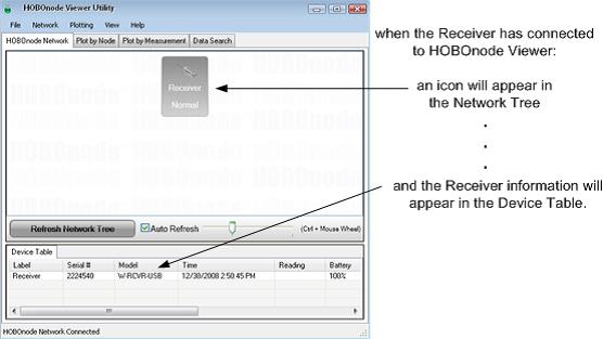 重要信息:您只能將一個(gè)HOBOnode接收器連接到計(jì)算機(jī)。如果您有多個(gè)HOBOnode網(wǎng)絡(luò),則必須從單獨(dú)的計(jì)算機(jī)運(yùn)行。