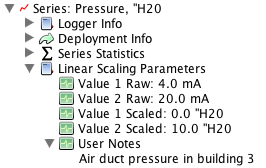 在“參數(shù)”面板的“縮放”列中,鍵入縮放系列的單位名稱,并在“縮放”列中輸入縮放值,以與“原始”列中的數(shù)字相對應(yīng)。 (原始列中的默認(rèn)值基于傳感器支持的高和低值,但您可以使用不同的值,只要這些值落在傳感器的范圍內(nèi))。這些數(shù)字建立了原始和縮放之間的線性關(guān)系值。