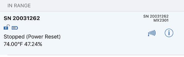 下載HOBOmobile并連接到記錄器 安裝HOBOmobile應(yīng)用程序連接并使用記錄器。 1.從App Store下載HOBOmobile應(yīng)用程序; 2.如果出現(xiàn)提示,請(qǐng)打開應(yīng)用程序并在設(shè)備設(shè)置中啟用藍(lán)牙; 3.按記錄器上的按鈕將其喚醒; 4.點(diǎn)擊屏幕底部的HOBO圖標(biāo); 點(diǎn)擊列表中的記錄器連接到它。 如